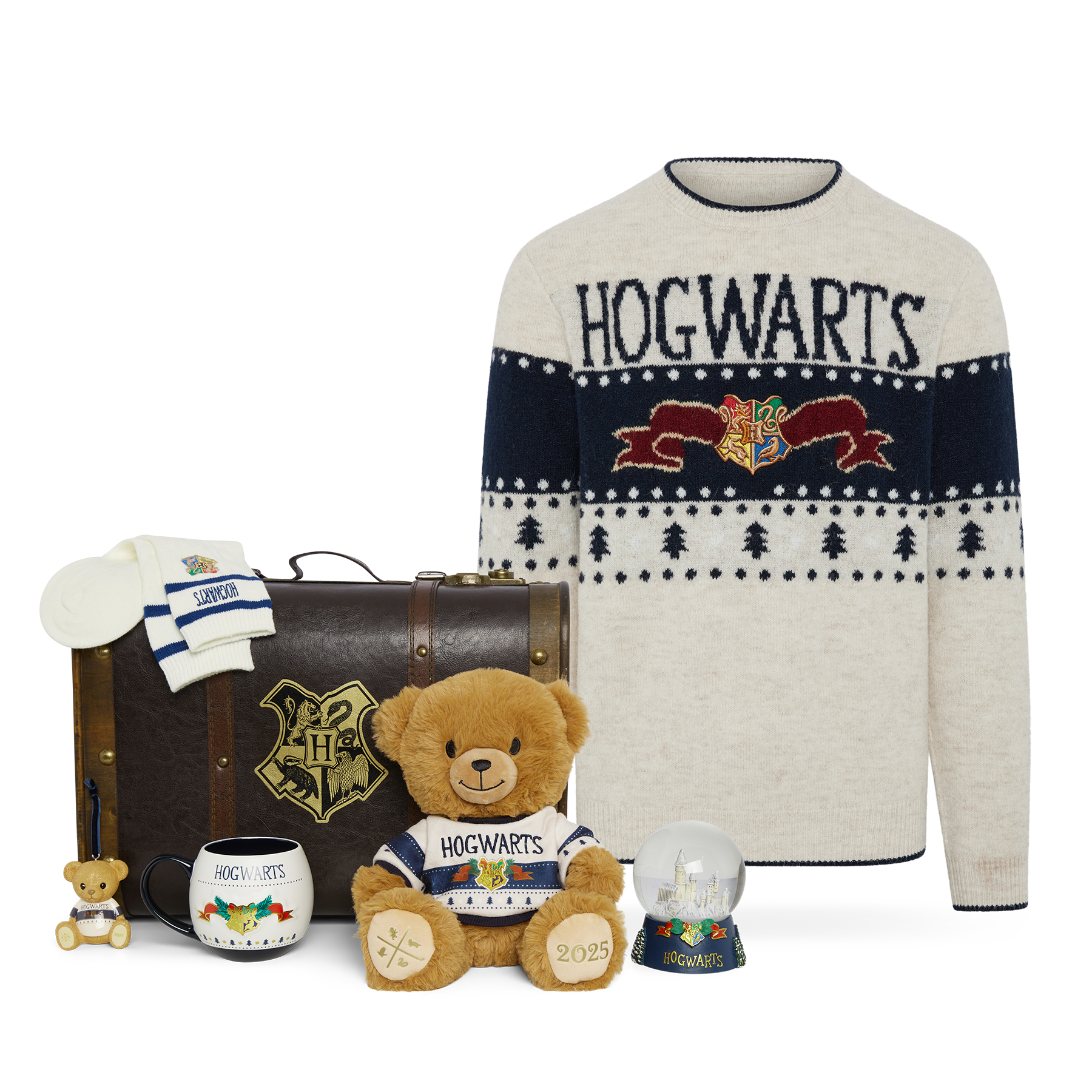 At the heart of this enchanting trunk is the limited-edition Hogwarts Christmas Bear, dressed in a matching sweater featuring the same wintry design worn by fans in the included adult-sized knit. Inspired by snowy strolls beyond the castle, this bear and sweater duo captures the warmth and wonder of a Hogwarts Christmas like never before. Nestled alongside themed treasures like a castle snow globe, mug and socks gift set, and a matching bear ornament, this trunk is a spellbinding tribute to the season. Whether placed under the tree or gifted to a fellow fan, it’s a magical moment just waiting to be unwrapped.