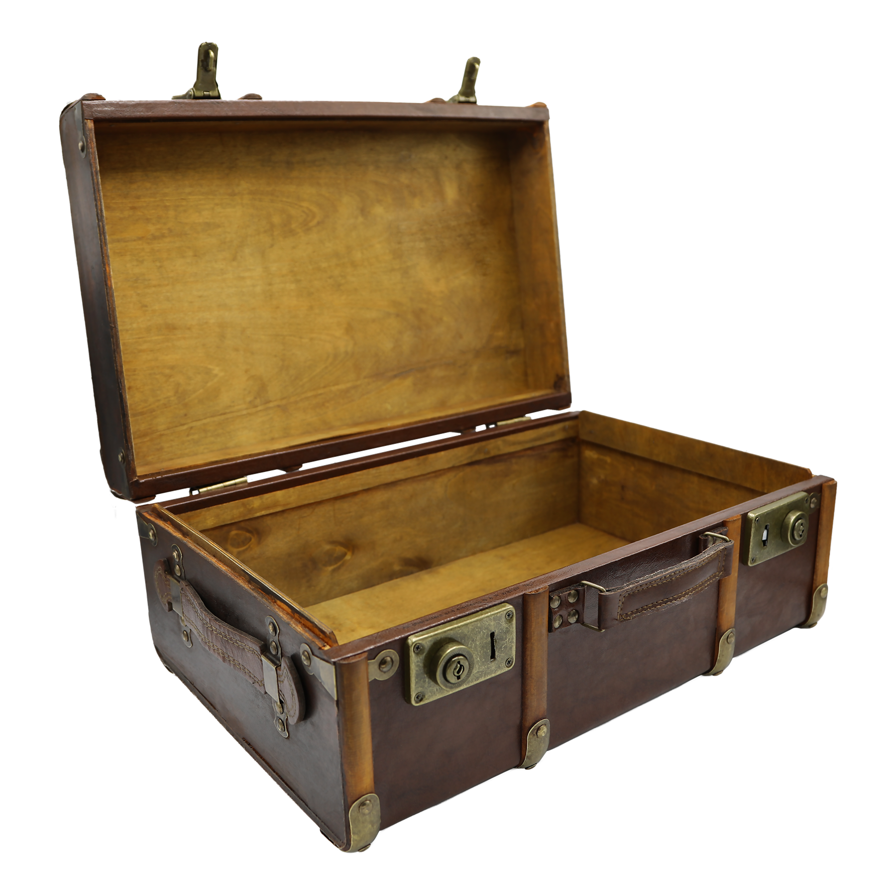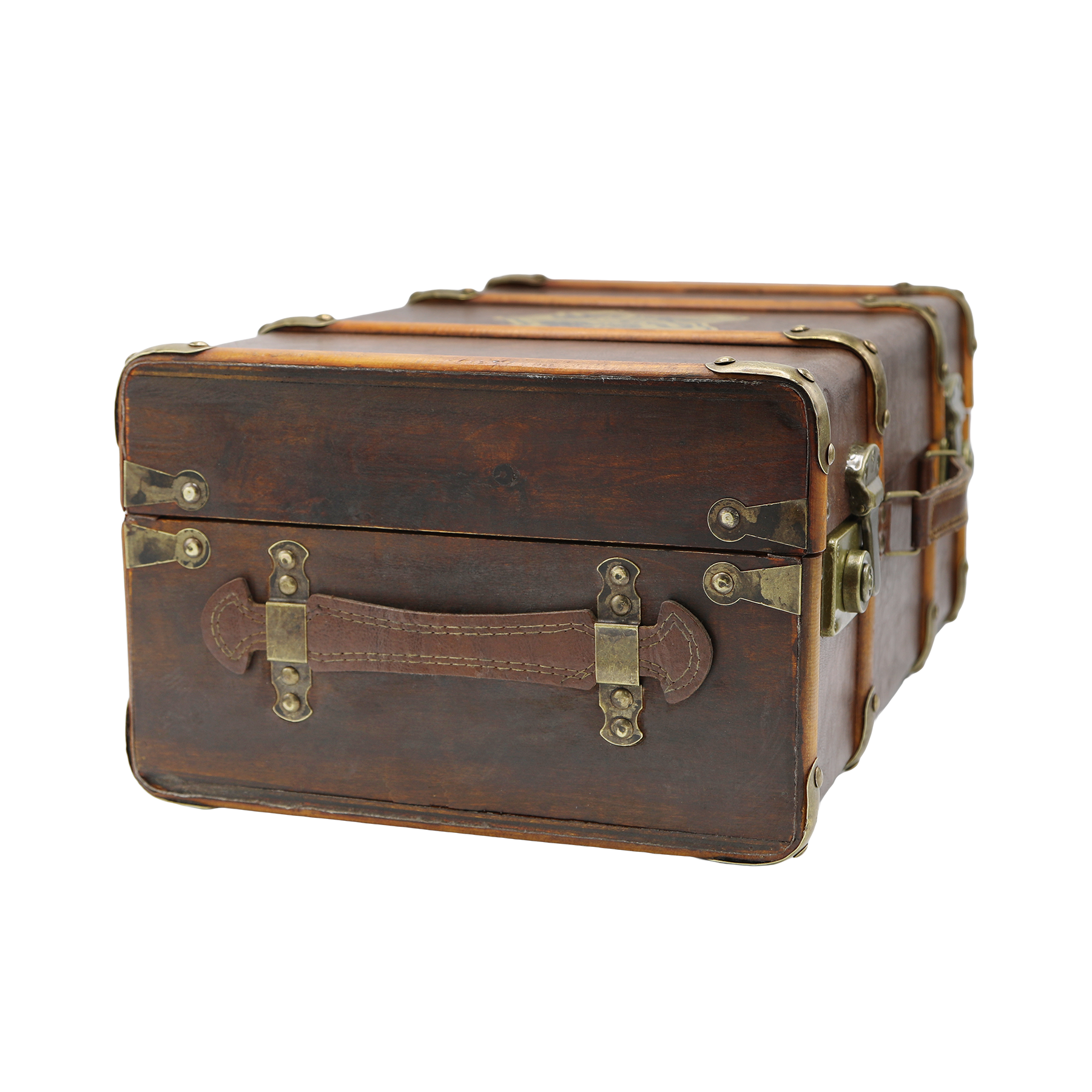 The trunk is made from sustainably sourced plywood and PU, with iron fittings finished in Antique Brass with lacquer. Please note that it is not a toy.